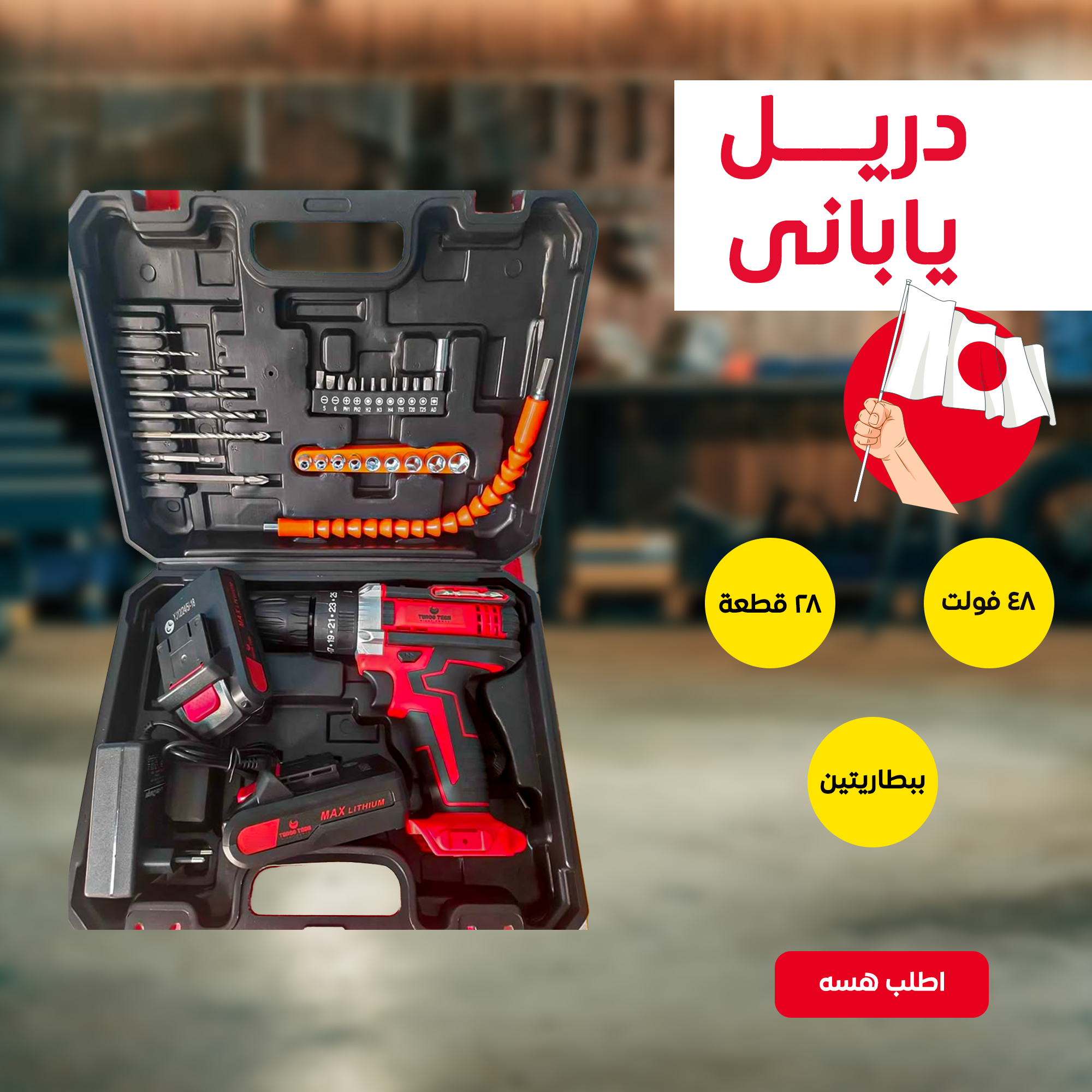 قوة يابانية ما تنطيك وجه: بطاريتين قوية ودريل يشتغل بأداء عالي على كل المواد. ⚡🔋