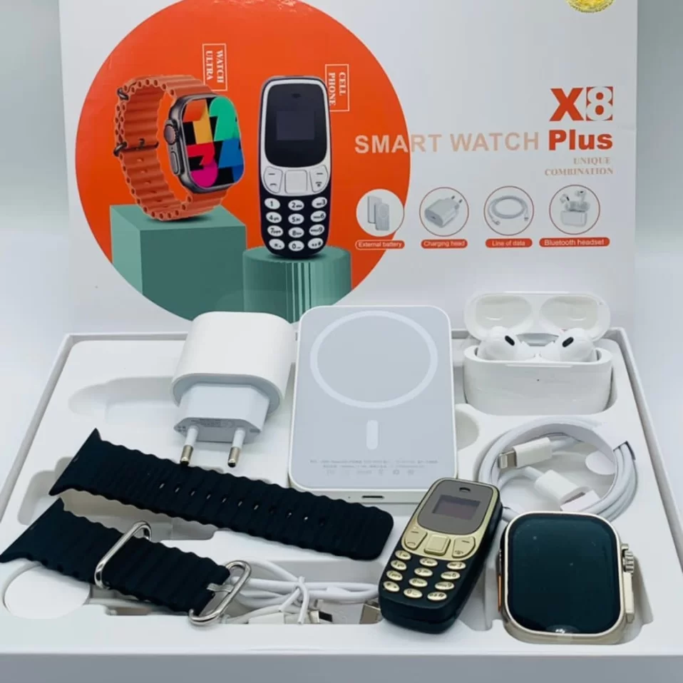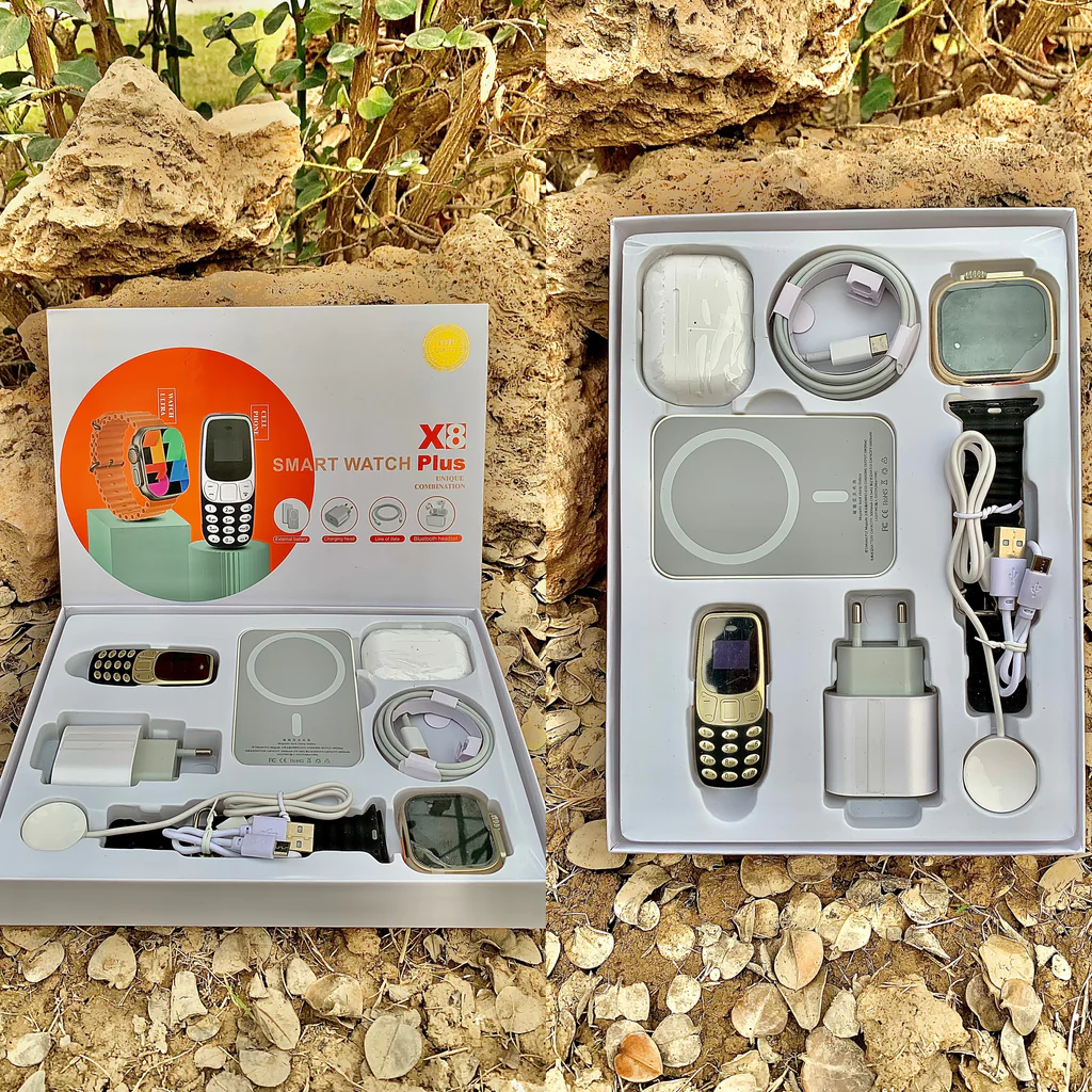 هذا البوكس الرائع يضم مجموعة من الأدوات الذكية مثل ساعة الترا سمارت، وايربودز، شواحن متعددة، ووصلة للايفون، وباور بانك. استفد من التقنية بأقصى إمكاناتها مع هذا الحل المتكامل